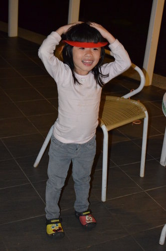 愛耍可愛的妮妮.把鍋墊拿來當頭套戴